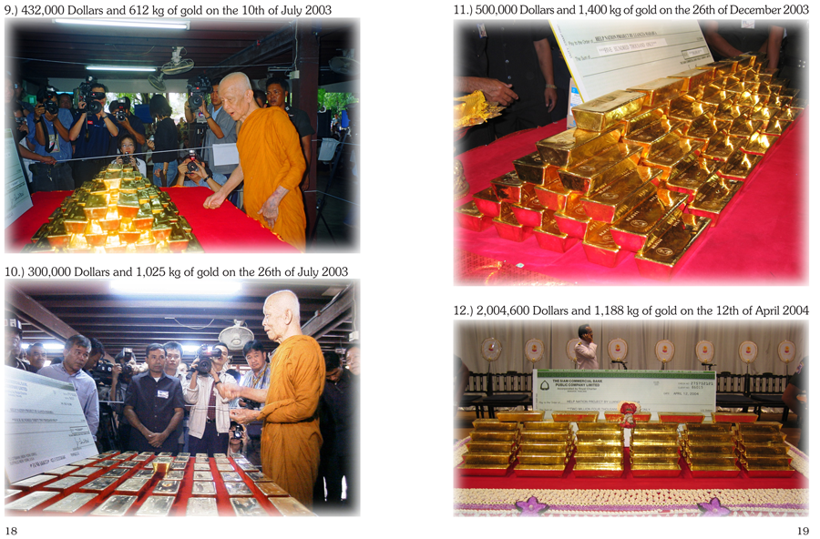 Legacy Project "Thai help Thailand" Dhamma Network, Helping his country and animals "My corpse will be burnt by firewood.." Offerings of Gold on 15 occasions Some pictures of Luangta's Relics
