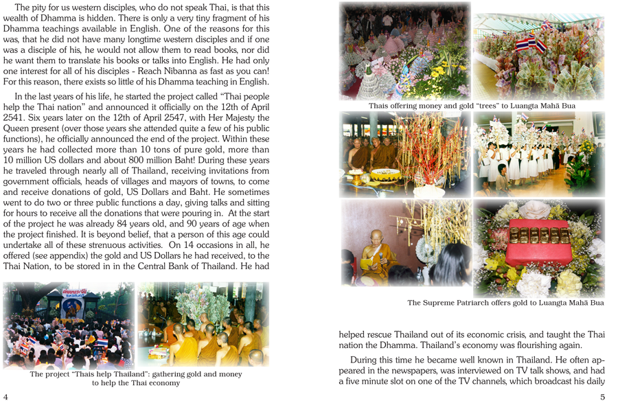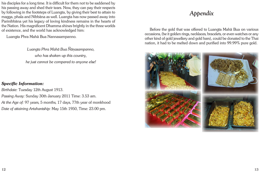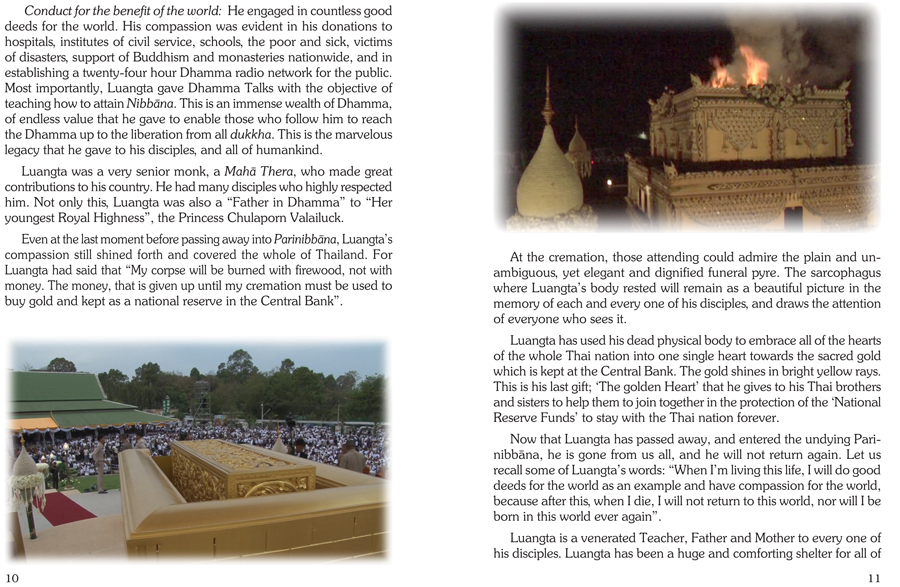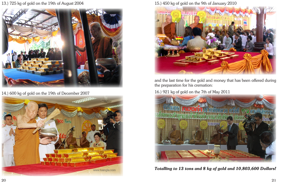 Legacy Project "Thai help Thailand" Dhamma Network, Helping his country and animals "My corpse will be burnt by firewood.." Offerings of Gold on 15 occasions Some pictures of Luangta's Relics